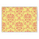 Un diseño clásico y elegante de damasco en tonos amarillo carnicero pastel y rosa arándano.