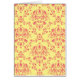 Un diseño clásico y elegante de damasco en tonos amarillo carnicero pastel y rosa arándano.