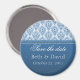 Elegante y sofisticado Radiant Glam Damask Save the Date Magnet en azul real. Este sencillo y lujoso patrón, salvo el imán de citas, es una forma divertida y creativa de informar a sus amigos y familiares de su próximo boda. Personalizar este diseño añadiendo los detalles de tu día especial! Este producto también sería un hermoso favor de boda para sus invitados.
