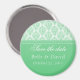 Elegante y sofisticado Radiant Glam Damask Save the Date Magnet in kelly green. Este sencillo y lujoso patrón, salvo el imán de citas, es una forma divertida y creativa de informar a sus amigos y familiares de su próximo boda. Personalizar este diseño añadiendo los detalles de tu día especial! Este producto también sería un hermoso favor de boda para sus invitados.