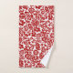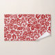 Toalla colocada en un patrón vintage de damasco floral William Morris, realzado digitalmente y coloreado, en rojo profundo sobre un fondo blanco
