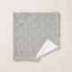 Este elegante juego de toallas presenta un diseño de damasco gris con un borde gris sólido.