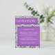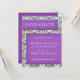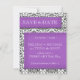 Moderno y moderno ahorra los anuncios de fechas para su Boda. Presenta un diseño/ilustracion de costura púrpura sobre un patrón de damasco blanco y negro.
