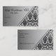 Patrón de damasco negro sobre el fondo gris plateado Certificado de regalo Tarjeta de visita. Puede ajustar el texto de acuerdo con sus requisitos.