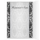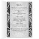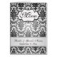 Damasco negro en una tarjeta de menú Boda de fondo plateado. Puede ajustar el texto de acuerdo con sus requisitos.