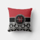 Almohada personalizada monograma rojo negro del damasco. Diseño por el © de Elke Clarke. Personalizar con su nombre y monograma. Cambie el color de fondo y el color del monograma también si usted tiene gusto de personalizar totalmente su almohada de tiro para hacer juego sus colores del dormitorio. Un gran regalo para las adolescencias y las mamáes.
