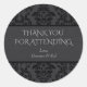 Damasco negro y gris Gracias Pegatinas. Estilo gótico gris oscuro con adornos adamascados negros. Este diseño es parte de nuestra colección de bodas góticas Damask. Diseñado por Metro-Events.com