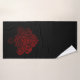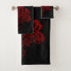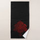 El diseño presenta un fondo negro con un diseño de damasco rojo oscuro.