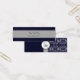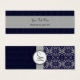 Una imagen de patrón digital sin fisuras de damasco gris plateado y azul marino en la parte superior, y bandas de estilo satinado vintage envejecidas y azul de medianoche en la parte inferior, con una cubierta de cinta con un sello de texto monograma de personalizable.