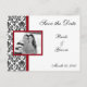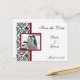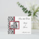 Añade tu propia foto a nuestro personalizado Guardar las postales de la fecha con un elegante diseño de damasco negro y rojo. Plantilla fácil de usar: sólo tiene que añadir la foto e introducir los nombres de la novia y de la novia, junto con la fecha del boda en el espacio que se proporciona.