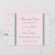 La boda permite guardar las postales de la invitación de fecha en un elegante patrón de damasco floral rosa claro, gris y blanco, elegante y completamente personalizable con los detalles de su boda. También disponible en muchos otros productos para la fiesta de boda.