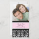 La boda permite guardar las tarjetas de fotos de fecha en un elegante y moderno color rosa claro, negro y blanco con el clásico patrón de damasco floral. Disponible en franqueo coincidente y muchos otros productos para su boda.