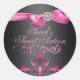 Este elegante sello para sobres de personalizable dulce dieciséis cumpleaños cuenta con una proa de damasco rosa y perlas en un fondo negro. Personalizar añadiendo tus detalles en el color y la letra de tu elección!