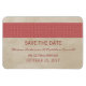Elegante y moda Rústico Damask Save the Date Premium Magnet con una apariencia de papel texturado vintage y un floreciente borde de patrón de damasco en rojo oscuro. Fácil de personalizar, simplemente añada los detalles de su boda. Haga clic en "Personalizar" para encontrar más opciones de personalización.