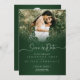 Esta elegante tarjeta Save the Date muestra un rico patrón de damasco verde que enmarca maravillosamente la foto personalizado de la pareja. La refinada tipografía aporta un toque moderno y elegante, mientras que el diseño combina la artesanía tradicional del damasco con un estilo contemporáneo y fresco. El diseño inspirado en el monograma destaca los nombres de la pareja y la fecha boda con sofisticación, lo que hace que sea la manera perfecta de anunciar su día especial. Los tonos verdes exuberantes aportan un toque romántico y atemporal.