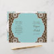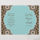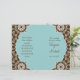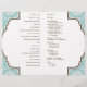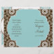 Un encantador y romántico programa de bodas para la novia que se inclina hacia el contemporáneo con un pequeño toque de tradición. El blanco de las damasquinadas tiene un aire de encaje moderno y el diseño del centro de quatrefoil no es nada del otro mundo. El azul acuático, el marrón chocolate y el blanco son una combinación de colores muy agradable. Esta invitación se puede crear en cualquier combinación de colores que desee. Todo lo que necesitamos es una muestra o muestras de color y estamos encantados de configurarlo para usted, sólo envíenos un correo electrónico. RECOMENDACIÓN DE PAPEL: A menos que tenga estas puntuaciones profesionales y dobladas en una imprenta, recomiendo la selección de valor de papel que es acabado mate. El papel básico es de alto brillo afuera y puede romperse con colores oscuros en el punto de plegado.