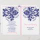 Elegante motivo damasco azul marino, ceremonia boda plegada rosa y programa fiesta. Un diseño boda moderno y clásico con un toque retro. Un delicado diseño boda con un toque vintage, perfecto para un boda de primavera o verano contemporáneo o tradicional. Tendrás que doblarlo en el centro. Elija sólo este tipo de valor de papel a medida que se dobla bien.