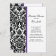 Comience bien su evento con nuestra moderna y elegante invitación a la ducha damasca negra con una banda de acento púrpura. Solo personalizar nuestra invitación con la información de tu boda y estás listo para ir. Disponible en otras combinaciones de colores en nuestra tienda en www.celebrateitweddings.com. Consulte nuestras notas de agradecimiento, pegatinas y botones de novia en nuestra tienda