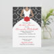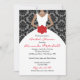 La invitación a la ducha de novia del H. H. con una novia sosteniendo un ramo rojo... el diseño incluye un fondo damasco gris y negro. INFORMACIÓN SOBRE DERECHOS DE AUTOR: Diseño Copyright © 2011 Invitando expresiones. Todos Los Derechos Reservados. Sólo uso personal y no comercial.