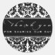 Gracias pegatina con un elegante fondo de damasco blanco y negro.