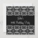 Elegante invitación a fiesta de cumpleaños número 50 de una mujer damasco blanca y negra personalizada. Personalizar con el estilo de letra y el color de la fuente que elija.