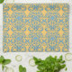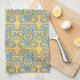 Esta toalla de cocina tiene un elemento damasco/motivo, creado por Kristie Hubler, repetido, en un color azul de huevo / azul oceánico / azul acuático, con una calabaza amarillo claro / fondo dorado italiano / mediterráneo. Viejo mundo.