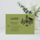 La parte trasera está decorada con un damasco de araña, mientras que la parte delantera del RSVP está decorada con una lámpara de araña de cristal negro que le da un toque elegante. Se muestra en el papel básico; sin embargo, recomiendo el peso y textura del papel de lino.