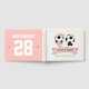 Un dulce y deportivo estrenando un libro de bodas de fútbol de Forever con una pelota de futbol de novia y novio. La pelota de fútbol de novia lleva un arco rosado y un ramo de flores rosadas mientras que el futbolín lleva una corbata negra. La parte trasera del libro de bodas de temática futbolística se puede personalizar con el apellido de la nueva pareja y los dos últimos dígitos de su año boda para un diseño de jersey dulce y deportivo. La columna vertebral también puede ser personalizada con su propio texto y título. Este divertido y adorable libro de bodas de temática futbolística es perfecto para la pareja a la que le encanta ver, entrenar o jugar al fútbol, al futbol o al fútbol, como es conocido en el resto del mundo. Pintura © Chrissy H. Studios, LLC. Todos Los Derechos Reservados.