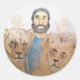 Estos pegatinas retratan la historia bíblica de Daniel en la cueva de los leones.