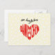 Envíe una nota de agradecimiento a un amigo o conocido alemán con esta elegante postal. El diseño es un juego de palabras usando la expresión alemana "en herzliches Dankeschön". Esto se traduce como "un sincero agradecimiento" (literalmente "un sincero agradecimiento"). Las palabras 'en herzliches' están en un fluido guión negro; Dankeschön está en las capitales rojas, transformadas en forma de corazón. El fondo de color cremoso tiene una sutil dispersión de corazones blancos.