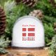 Globo de nieve personalizado con la bandera danesa en rojo con una cruz escandinava o nórdica blanca. Debajo del Dannebrog está la palabra DINAMARCA en los colores de la bandera. Dinamarca es Denmark en danés. En este diseño se proporciona un espacio para que añadas un nombre para un toque personalizado. Si prefieres crear un regalo, añade el nombre de otra persona. Un bonito regalo navideño o relleno de calcetín.