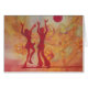 Un sillouette de un par, de un hombre y de una mujer, danza, una bola de discoteca colgada desde arriba, rosas rosados y amarillos en color está en el fondo, con los pétalos remolinando alrededor. Esta pintura expresiva y resumida da la sensación de la diversión y de la celebración. Acuarela y guache. Hice esto como promo para la banda de la música del jazz de un amigo.