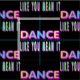 Las palabras bailan como usted medio él en los colores de neón en tela negra