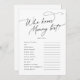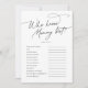 Este blanco y negro que conoce la mejor tarjeta de juego de ducha de bebé de la marca Darcy Collection es perfecto para una simple ducha de bebé o rociada de bebé. El moderno diseño minimalista presenta una caligrafía romántica blanca y negra intemporal con un estilo bohemio de cuento de hadas. Personaliza las preguntas si quieres. Elija las tarjetas impresas, o un archivo imprimible que pueda imprimir localmente o en casa, o ambos.