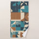 Retro Look Dark Blue, Teal, Brown, and Tan Geometric Pattern.