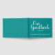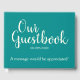 Este minimalista libro de visitas incluye los mensajes "Our Guestbook" y "¡Un mensaje sería apreciado!", junto con una fecha de evento personalizada. El texto es marfil de color y el fondo es cian oscuro de color. Un libro de personalizables genérico como este podría ser usado quizás en un evento como una fiesta de cumpleaños, un fiesta de retiro, una reunión familiar, un funeral o algún otro evento con invitados que quieran dejar un mensaje.