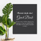 Perfect for display near your guest book table, this sign complements modern, classic, and formal wedding themes with ease. Personalize the wording if desired to reflect your unique style while creating a welcoming and heartfelt experience for your guests.