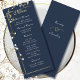 This dark navy blue menu with a delicate gold frame and white script is simply elegant. Perfect for any occasion ... all fields can be customized for your luncheon or dinner. Optional names on back for weddings and anniversaries