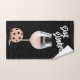 "Dinkers del día" o personalizar al "Día de Beber" o cualquier equipo de pickleball con temas vitivinícolas o de bebida que esté usando para la temporada del torneo. Cada miembro del equipo puede tener su nombre personalizado en la gráfica de cristal de vino con una linda bola de pickleball rosa rosa rubor de oro rosa sentada a su lado. El fondo de las toallas sudorosas y los tipos de letra se pueden cambiar para diseñar su propia toalla de pickleball de Wine Dinker para cada compañero de equipo.