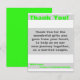 De Agradecimiento 4x5 FLAT Gracias Tarjeta Moderna Neon Stripe Green