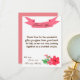 Esta adorable tarjeta 4x5 FLAT de agradecimiento es perfecta para agradecer a sus invitados los regalos que trajeron, o incluso para su compañía en su evento. Ideal para una ducha o una fiesta de cumpleaños. Estos son completamente personalizables y el poema puede ser eliminado completamente simplemente borrando el texto para dejar espacio para un mensaje personal escrito a mano, o puedes personalizar con tu propio poema o texto. Estos se imprimen en papel liso, vibrante y mate de 110 libras de peso. Contiene un 50% de contenido reciclado. Perfecto para sus invitaciones más formales, tarjetas de agradecimiento y invitaciones de eventos. Estos vienen con sobres blancos estándar. Tenemos una línea entera dedicada a este diseño aquí en el zazzle store bajo la pestaña * Diseño Colecciones del menú para incluir invitaciones (5x7), Etiquetas de retorno, Etiquetas de correo, Sellos para sobres, estampillas de rehenes, Tartas de copas, Envolturas de botellas de agua, Hershey's 1.55 oz. Envolturas para barra grande, Pegatinas en miniatura de Hershey, Envolturas para bolsitas de palomitas de microondas, Tarjetas para lugares escribibles, Toppers para bolsitas de goody, Tarjetas de agradecimiento FLAT (4x5), Tarjetas de agradecimiento FOLDED (4x5), Etiquetas de favoritos, Tarjetas de menú, libros de papel, Tapas de ligas, Tarjeta de bingo Marcadores, Hojas de llamadas con tarjeta de bingo, tarjetas de consejo para escritura (4x5), etc.