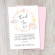 Cuidada y caprichosa tarjeta de agradecimiento para bebé con "Gracias" en un guión elegante y acuarelas rosas y amarillas inspiradas en boho de un arcoiris, sol, corazones, estrellas, lunas y nubes. Personaliza tu mensaje o deja en blanco para una nota manuscrita.
