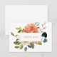 Esta magnífica tarjeta de agradecimiento boda presenta un fondo blanco nítido y un texto de color ocre oscuro. Una alegre muestra de flores en la parte delantera de la tarjeta le da un toque de elegancia y estilo a su boda estacionario. La parte posterior incluye el área para el mensaje manuscrito junto con los nombres de las parejas. Dejar los cuadros de texto vacíos si no se requiere texto.