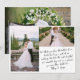 Gracias tarjeta con foto boda y tipografía de estilo manuscrito. La plantilla multifoto muestra las imágenes como una foto vertical y una foto horizontal en la parte delantera con el mensaje "manuscrito" en la parte posterior. La parte posterior tiene una imagen vertical de sangría completa con un texto superpuesto para los nombres de la novia y el novio, la fecha de su boda y la ubicación. Diseño moderno simple en blanco y negro y muy fácil de personalizar del color de fondo, y/o del texto, si desea coincidir con su paleta de colores boda. Por favor, navegue por mi colección de fotos de mi Boda para ver diseños alternativos.