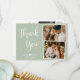 Elegante, Minimalista Guión Letrado Leyenda Sage Verde Boda Blanco Collage de fotos De Gracias Tarjeta. Elegante boda multifoto tarjeta de agradecimiento con dos (2) fotos en la parte delantera y una (1) foto en la parte posterior. Con el texto "Gracias" en una letra manuscrita de escritura tipográfica escrita a mano en blanco sobre fondo de color verde sabio pastel. Personalice el nombre personalizado y el mensaje de agradecimiento. Si prefiere escribir a mano la nota, simplemente elimine el texto de ejemplo para hacer más espacio. Si necesita ayuda o un elemento que coincida, póngase en contacto con el diseñador.