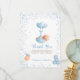 Esta adorable tarjeta de agradecimiento a tu bebé incluye a un niño oso de peluche siendo llevado en globos con un guión elegante y un texto moderno para tus detalles. La parte trasera muestra a un oso de peluche sosteniendo un globo. Fácil de personalizar haciendo clic en "Personalizar".