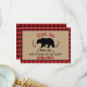 Esta tarjeta plana de agradecimiento a los chicos del leñador incluye un oso sobre fondo de papel Kraft con un borde de patrón de manto rojo. La tienda ofrece una invitación de cumpleaños de diseño similar con y sin fotografía. La tarjeta de agradecimiento de cumpleaños de leñador de este chico está lista para ser personalizada.