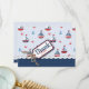 Colores náuticos en clásico rojo, blanco y azul con ancla y cangrejos y una etiqueta de agradecimiento de novedad con cuerda.