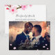 Flores de cerezo vibrantes y románticas pintadas en acuarela con pétalos dispersos. La parte frontal tiene una superposición de degradado (opcional) y la parte posterior tiene un mensaje personalizado (opcional).