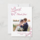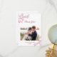 Diga gracias a sus seres queridos con estilo con nuestra tarjeta de agradecimiento de boda personalizada. Con una hermosa rama rosa de flores de cerezo y una foto de boda personalizada en la parte delantera, muestra un ambiente hermoso y romántico. Personalízalo más con un mensaje sincero en la espalda. Haga que el día sea aún más memorable con nuestro kit de boda completo, con el mismo delicado diseño de flores de cerezo. Celebra tu amor en la elegante y atemporal belleza de la flor de cerezo.